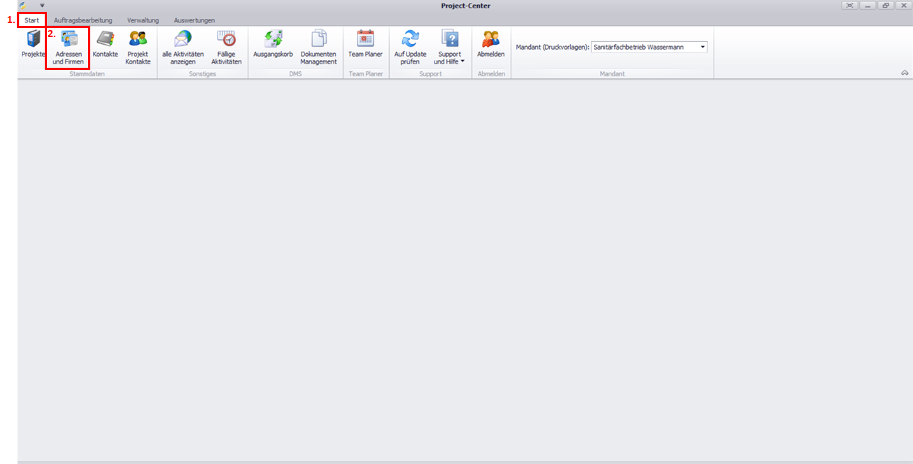 Klicken Sie im Aktionsmenü auf Adressen und Firmen.