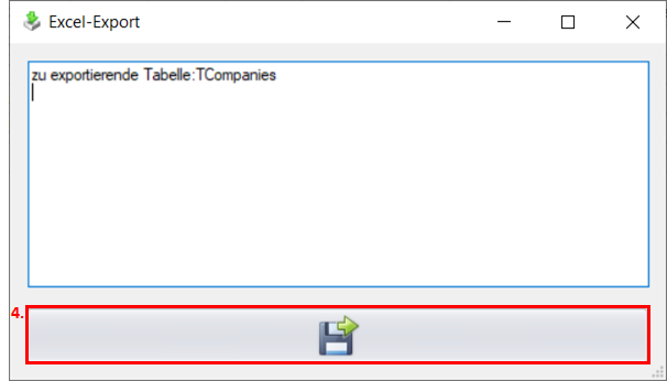 Es öffnet sich das Dialogfenster Excel Export.Klicken Sie auf das Speicher-Symbol.