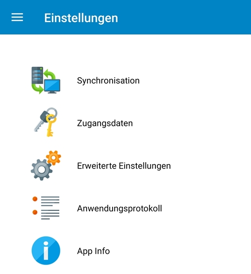Es öffnet sich die Seite Synchronisation.Bei Android Geräten öffnen Sie über die Menüzeile das Drei-Punkte-Menü