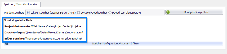 Den Speicherplatz Ihrer Dokumente finden Sie in den Infos zur “Speicher / Cloud Konfiguration”: