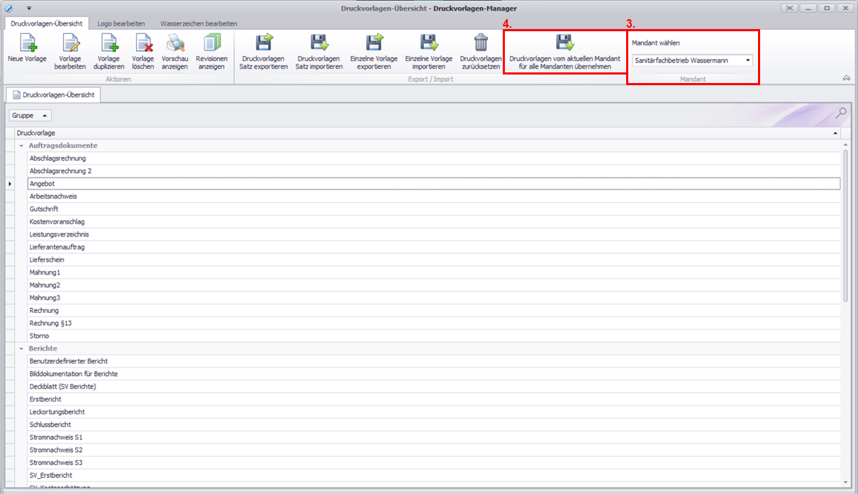 So übernehmen Sie die Druckvorlagen für alle Mandanten