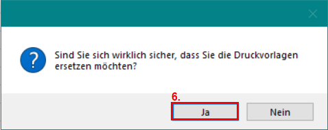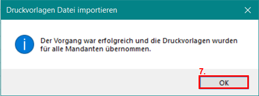 Bestätigen Sie die Erfolgsmeldung Druckvorlagen Datei importieren mit OK.