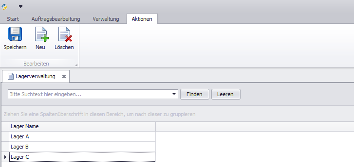 → Die Registerkarte “Lagerverwaltung” öffnet sich im Arbeitsbereich. Hier sehen Sie eine Übersicht aller angelegten Lager.
