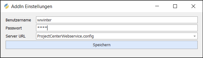 Arbeiten Sie mit mehreren Instanzen von Project-Center, wählen Sie die gewünschte Server-URL aus. Arbeiten Sie nur mit einer Instanz, gibt es keine weiteren Auswahlmöglichkeiten.