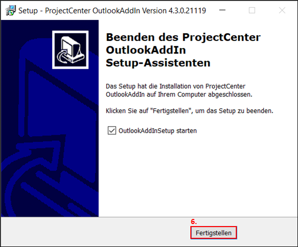 Das Dialogfeld wird geschlossen, der Setup-Assistent zur Installation des Outlook Add-Ins wird gestartet.