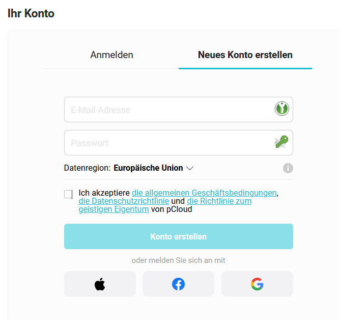 pCloud-Konto erstellen