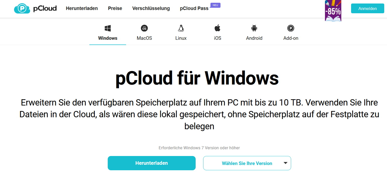 Öffnen Sie die Download-Seite von pCloud.com.