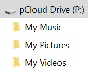 Sie können die Anwendung schließen. In der Seitennavigation Ihres Dateiexplorers wurde das virtuelle Laufwerk pCloud Drive (P:) eingerichtet.