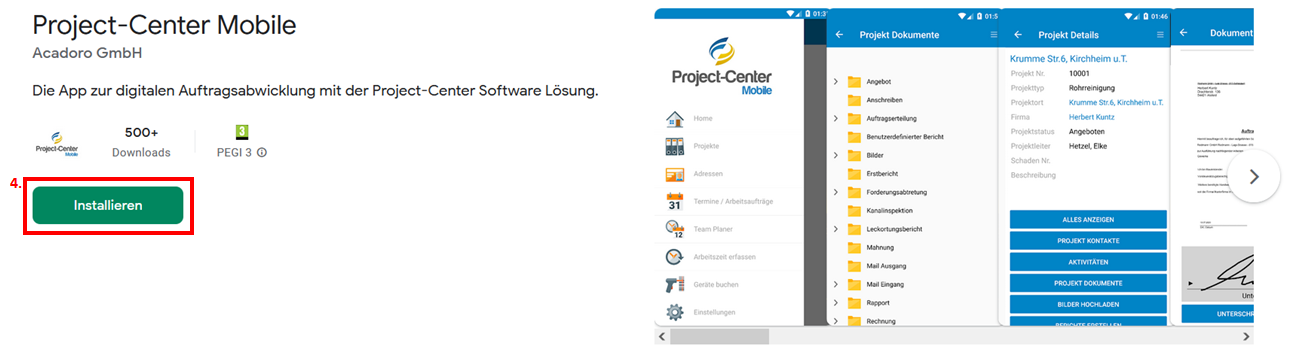 Stellen Sie sicher, dass Ihr mobiles Endgerät sie Mindestanforderungen erfüllt. Weitere Informationen finden Sie unter Mindestanforderungen Project-Center Mobile