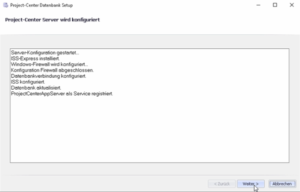 → Der Project-Center-Server wird installiert. Warten Sie, bis die Installation vollständig durchgeführt wurde.