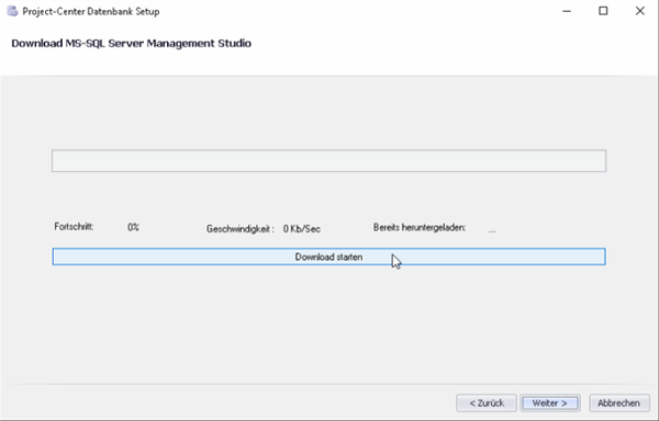 → Der Setup-Assistent "Project-Center Datenbank Setup" wird geöffnet.