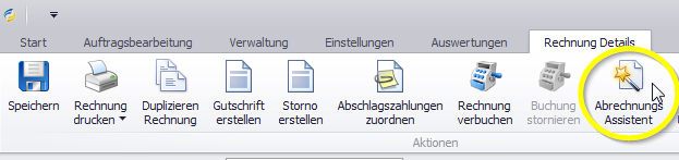 Klicken Sie im Aktionsmenü auf Abrechnungs Assistent.