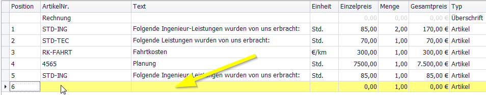 Tragen Sie z.B. einen Platzhalter in den gewählten Artikel ein.