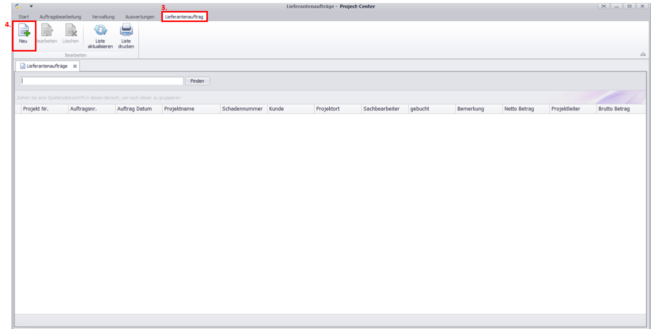 Klicken Sie in der Menüzeile auf Lieferantenauftrag / Lieferschein.