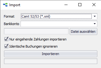 Klicken Sie auf die Schaltfläche "Bankbuchungen importieren". Es öffnet sich das Dialogfenster Import.