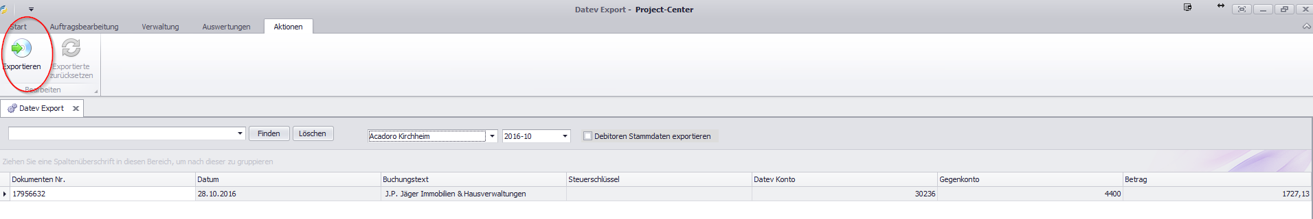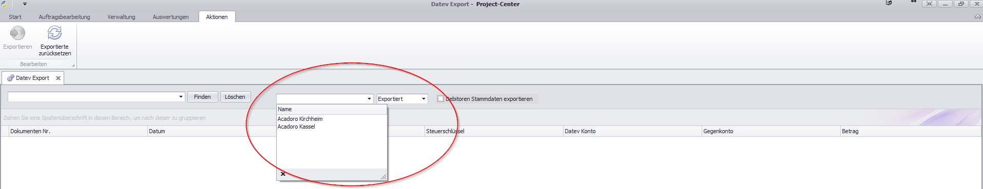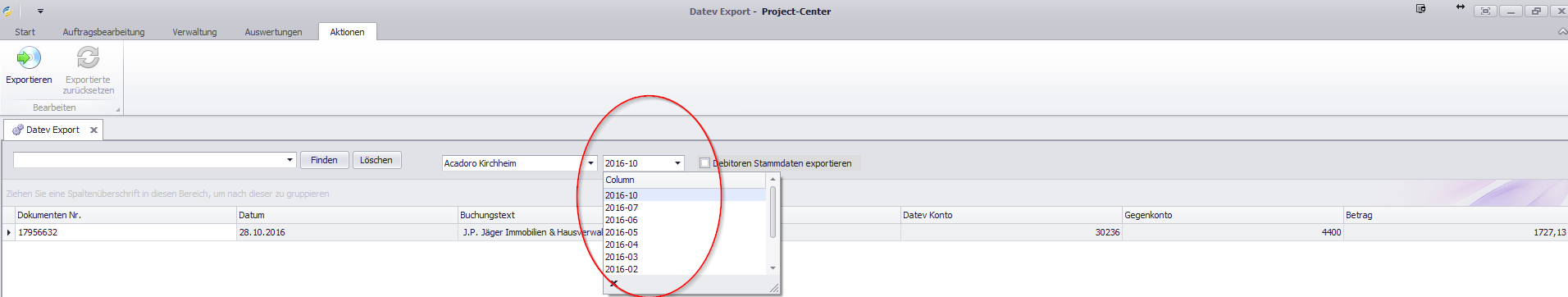 2. Klicken Sie im Aktionsmenü auf DATEV Export.