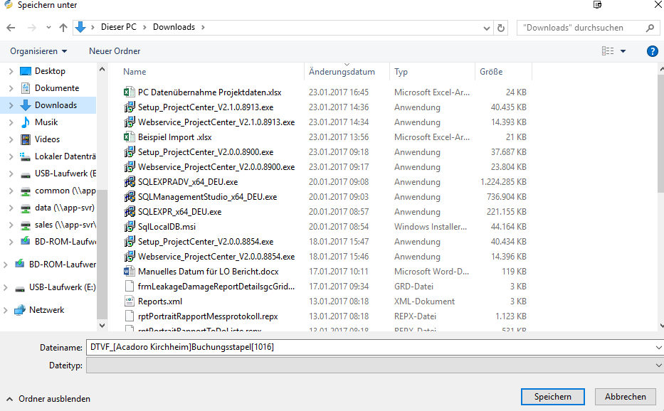 7. Wählen Sie über den Dateiexplorer den gewünschten Speicherort für die Export-Datei (.csv). Falls gewünscht, passen Sie den Dateinamen an und klicken Sie auf Speichern.