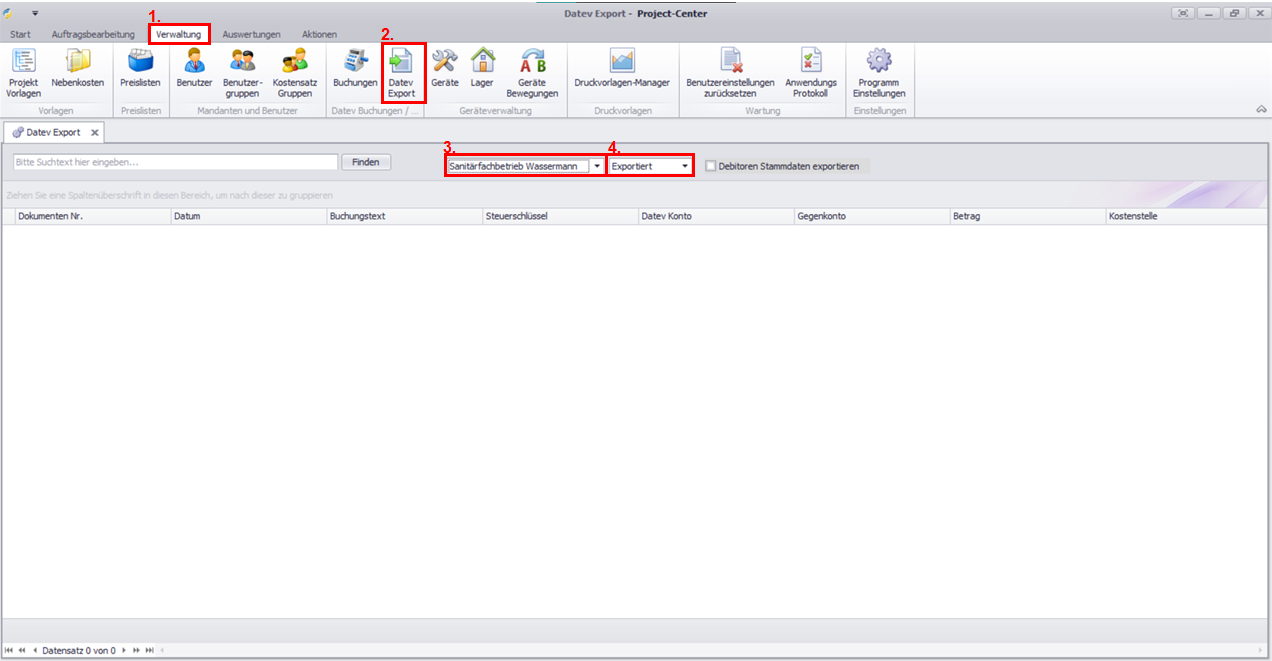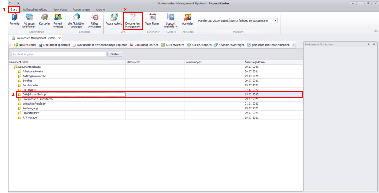 Ab Version 4.3.0.22171 werden die Export-Dateien automatisch im Dokumenten Management System von Project-Center gesichert (DatevExportBackup).