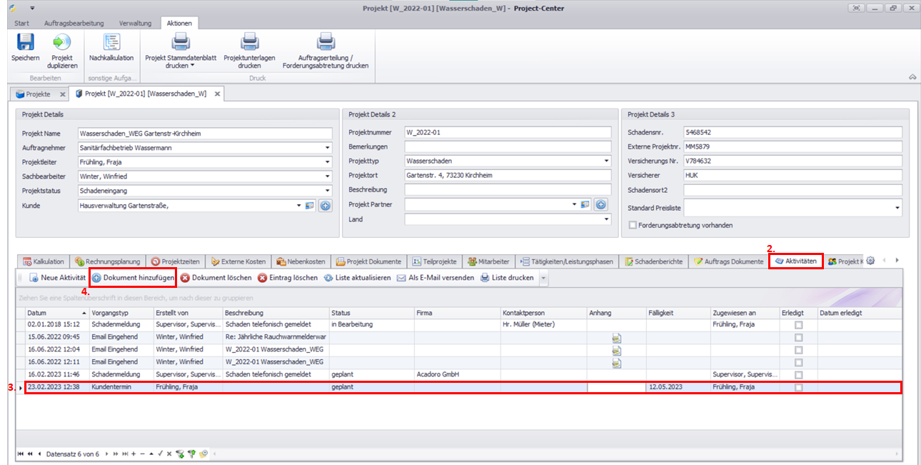 Weitere Informationen finden Sie unter Projekte.Wechseln Sie zum Reiter Aktivitäten.