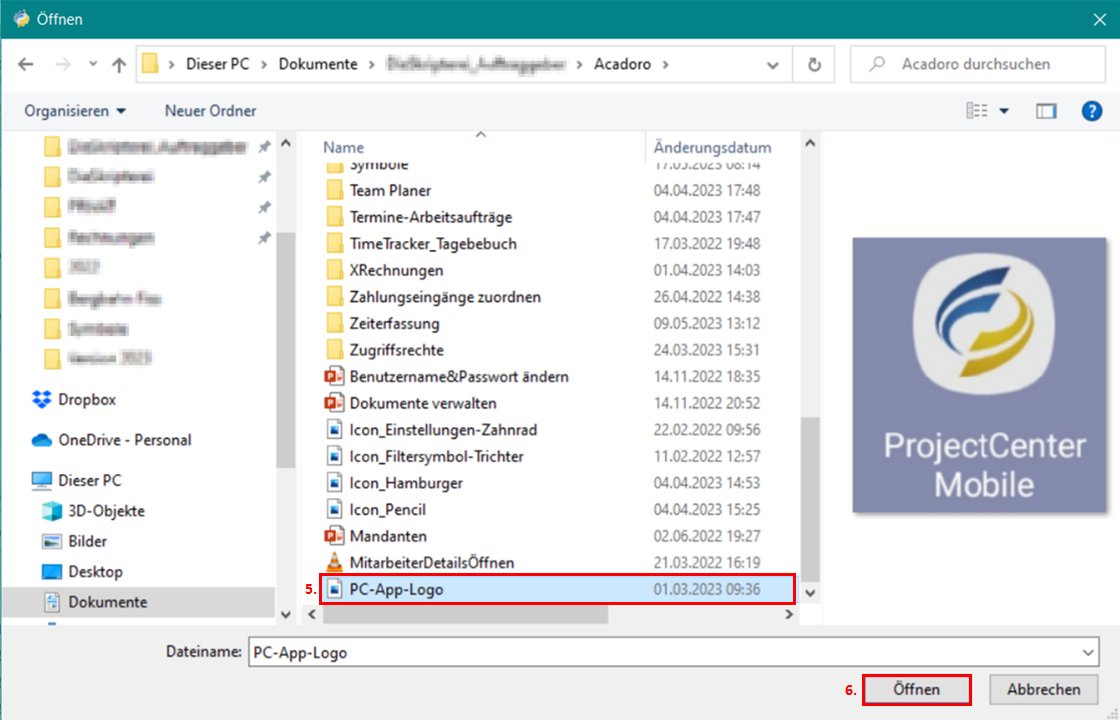 Es öffnet sich das Dialogfenster Öffnen.Markieren Sie eine Datei.