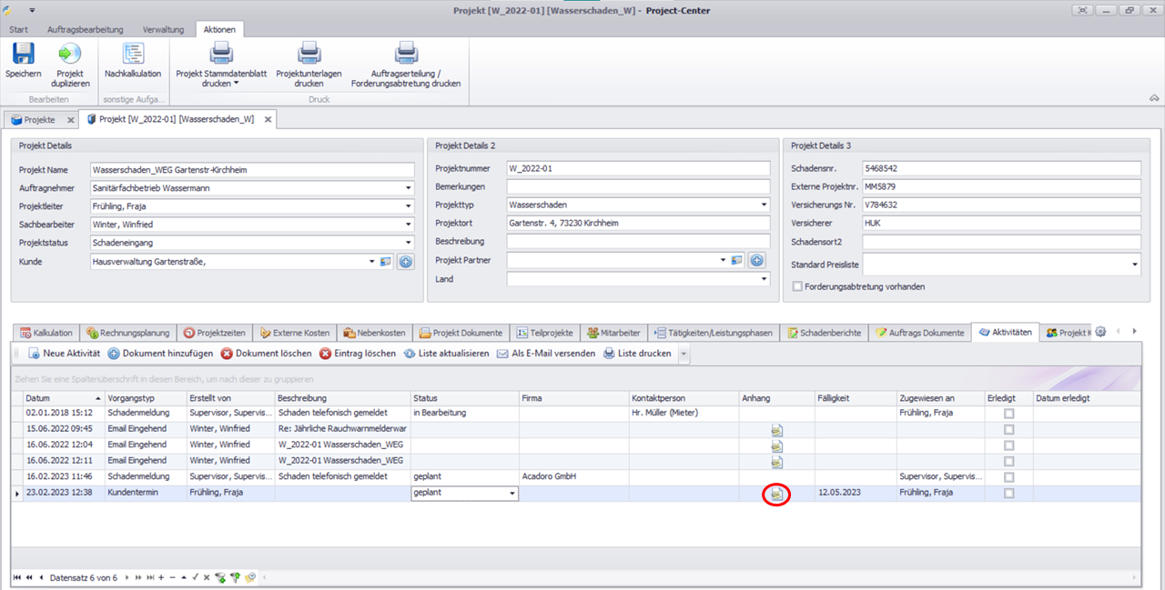 Um die Datei zu öffnen, klicken Sie im Feld Anhang auf das Symbol.