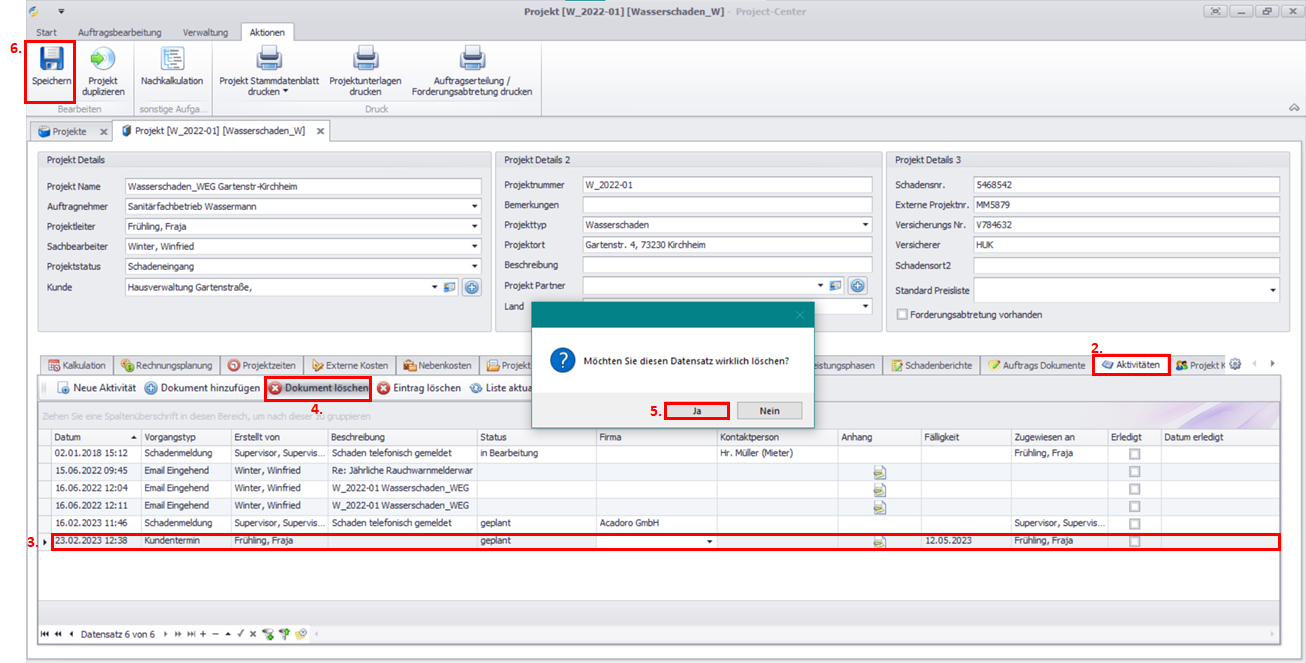 Dokument löschen.Bestätigen Sie Ihre Auswahl mit Ja.