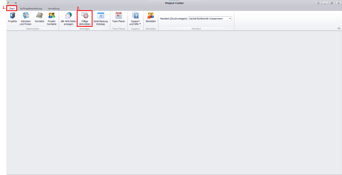 Klicken Sie im Aktionsmenü auf Fällige Aktivitäten.