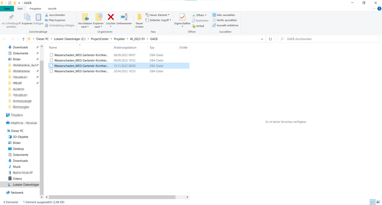 Die GAEB-Datei wurde im zugehörigen Projekt, in den Projektdokumenten abgelegt: Projektdokumente öffnen.