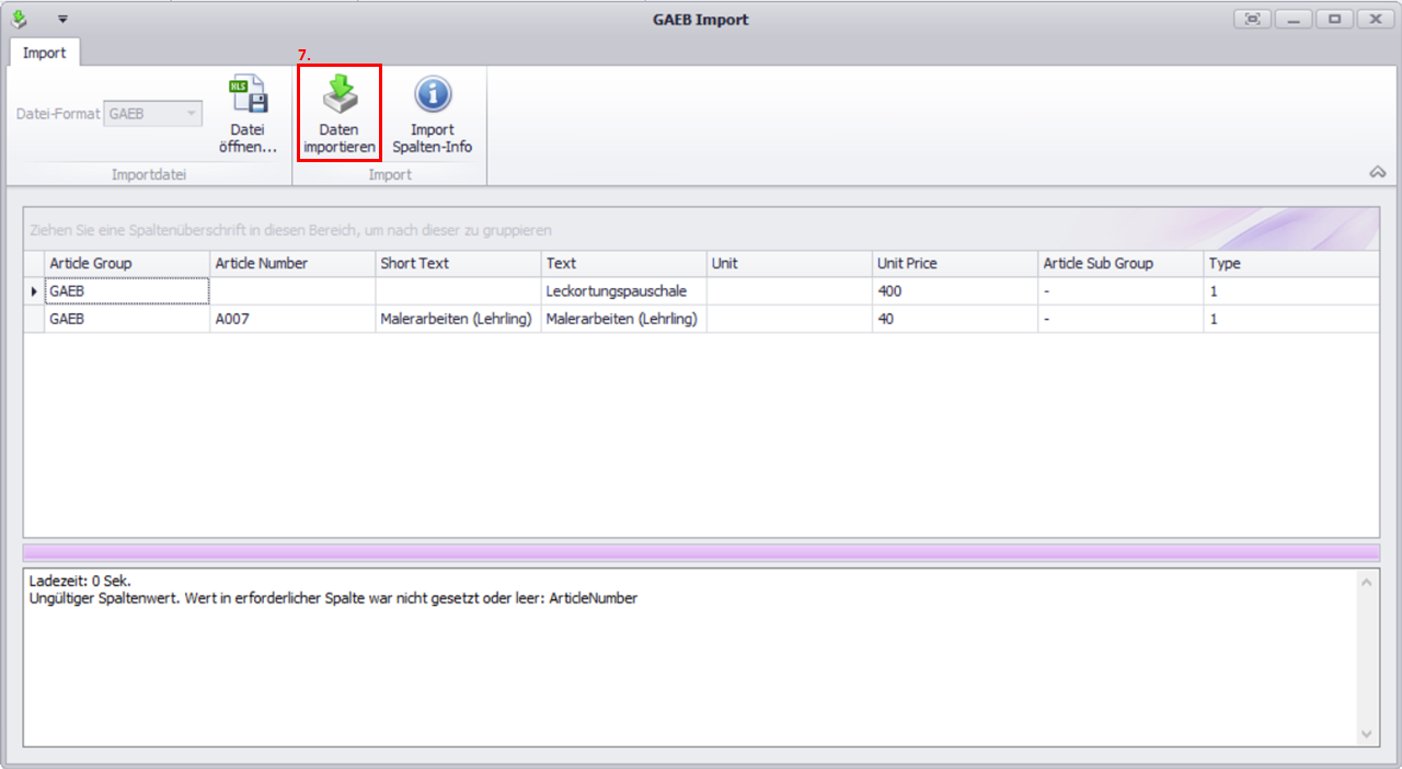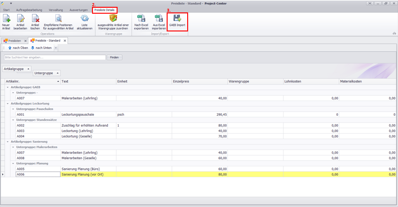 So importieren Sie eine GAEB-Datei in eine Preisliste