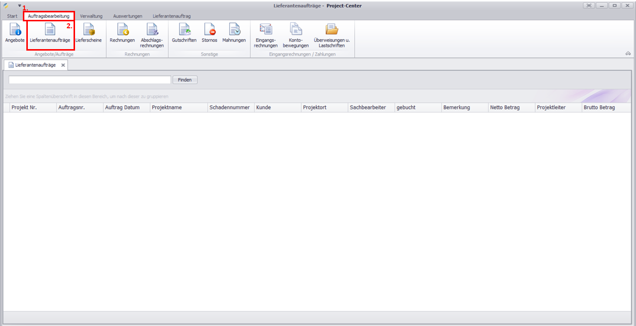 Klicken Sie in der Menüzeile auf Lieferantenauftrag / Lieferschein.