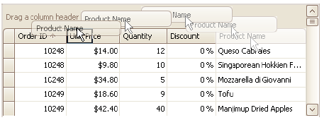 Sie können per Drag-and-Drop die Reihenfolge der angezeigten Spalten verändern: