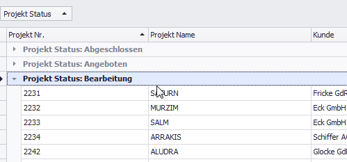 Datensätze können über Menüpunkte "Gruppenfeld" anzeigen und "Nach dieser Spalte gruppieren" auch entsprechend gruppiert werden.