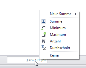 Per Rechtsklick auf die graue Fußzeile der jeweiligen Spalte sind außerdem z.B. Summen, Durchschnittswerte usw. einblendbar.