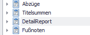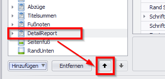 Markieren Sie den Eintrag “DetailReport” und klicken Sie auf den Pfeil nach oben, um diesen nach oben unter “Titelsummen” zu schieben.