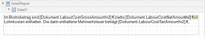 Im Bruttobetrag sind [Dokument.LabourCostGrossAmount!n2] € (netto [Dokument.LabourCostNetAmount!n2] €) Lohnkosten enthalten. Die darin enthaltene Mehrwertsteuer beträgt [Dokument.LabourCostTaxAmount!n2] €.