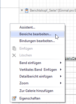 Rechtsklicken Sie im Bearbeitungsfenster der Druckvorlage in einen leeren Bereich und wählen Sie im Kontextmenü den Eintrag “Bereiche bearbeiten..”.