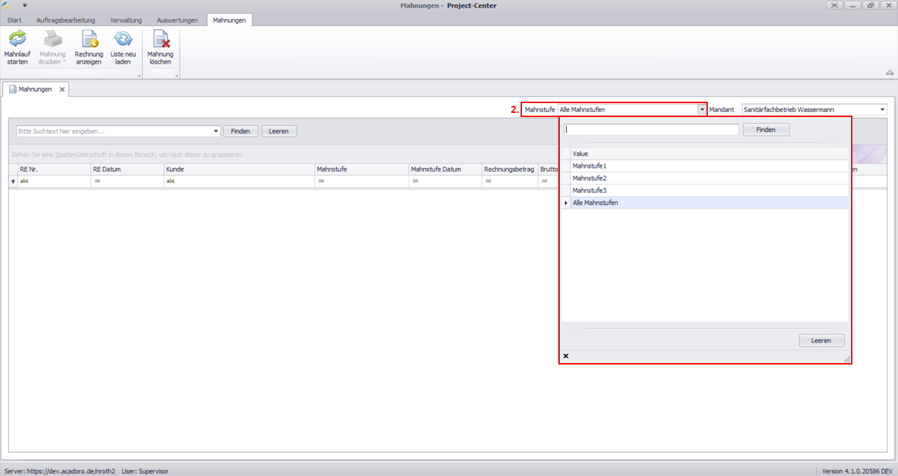 Öffnen Sie das Mahnwesen.