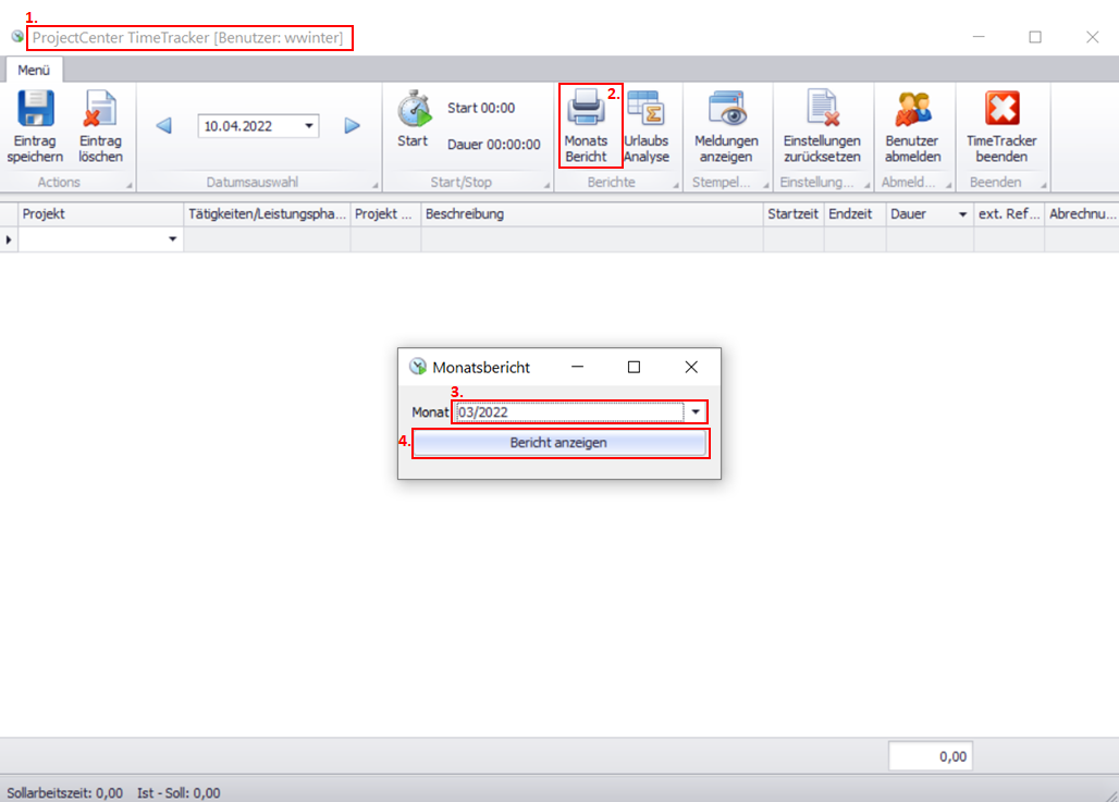Monatsbericht im Time Tracker (Tagebuch) erstellen