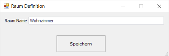 Es öffnet sich ein Dialogfeld, um die Raumbezeichnung einzugeben.Geben Sie die Raumbezeichnung, z.B. Wohnzimmer, ein und klicken Sie auf Speichern.
