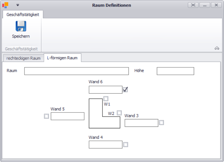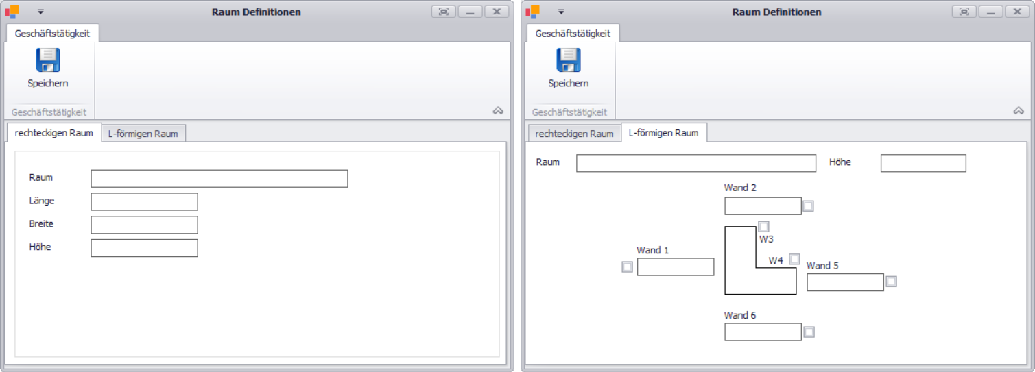 L-förmiger Raum, um die Längen eines L-förmigen Raumes einzugeben.