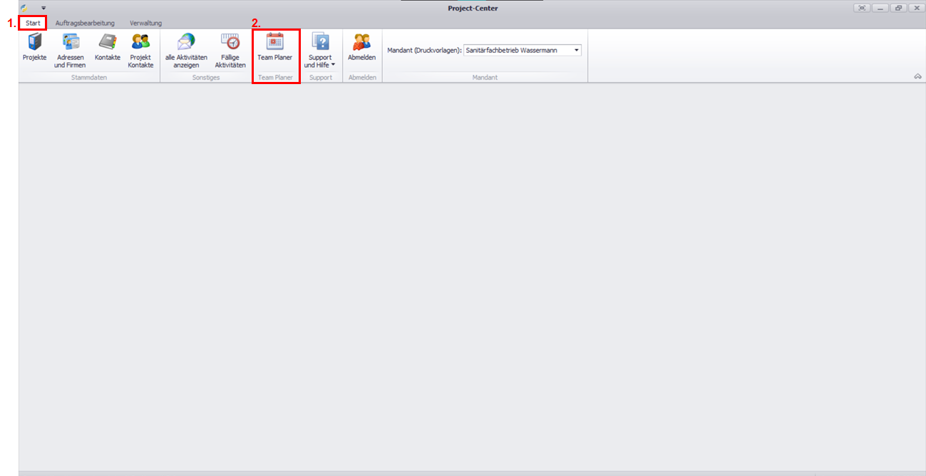 Klicken Sie im Aktionsmenü auf Team Planer.