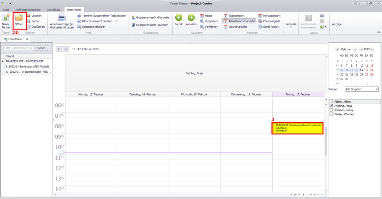 den Termin markieren und im Aktionsmenü auf Öffnen klicken.