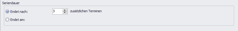 Wählen Sie die Seriendauer. Sie können entweder eine Anzahl an Terminen bestimmen oder ein Enddatum festlegen, an dem der letzte Termin stattfinden soll.