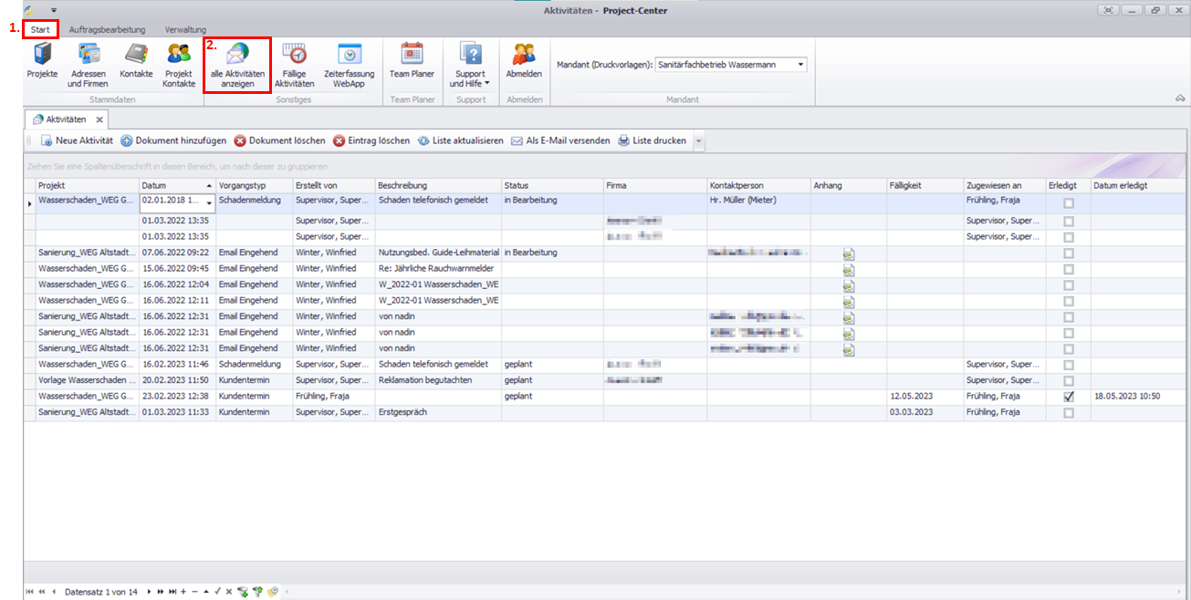 Sie können Aktivitäten im Projekt unter dem Reiter Aktivitäten oder eine Übersicht aller Aktivitäten öffnen.