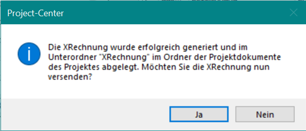 Sie können die XRechnung später in einem separaten Schritt versenden. Weitere Informationen erhalten Sie unterXRechnung versenden.Ja, um die XRechnung per E-Mail zu versenden.