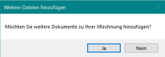 Klicken Sie aufNein, um keine Dateien in die XRechnung zu integrieren.