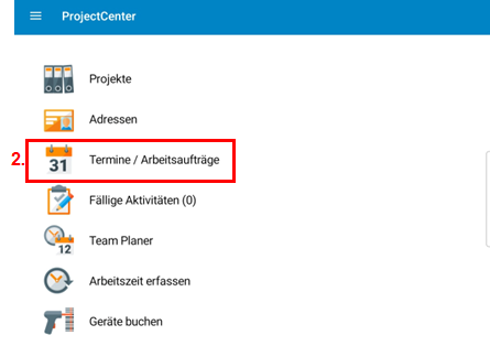 Tippen Sie auf Termine / Arbeitsaufträge.